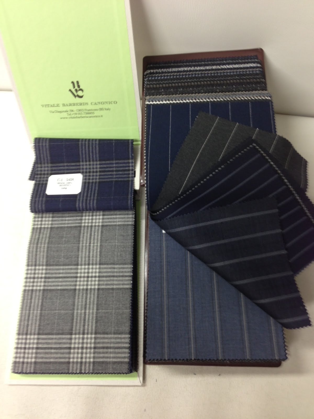 左、イタリー製canonicoのウィンドペーン(格子柄)。右、イタリー製ストライプ柄各種(ビシッと入っているのが特徴です。)↓
