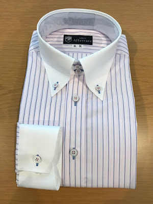 白ベースのストライプに衿とカフスを白のクレリックに仕上げました。